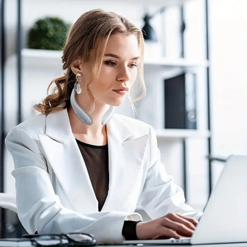 Restez productif et sans tensions toute la journée. Le masseur NeckioMed, léger et mains libres, se porte confortablement pendant que vous travaillez et délivre des micro-stimulations qui font fondre le stress sans interrompre votre concentration.