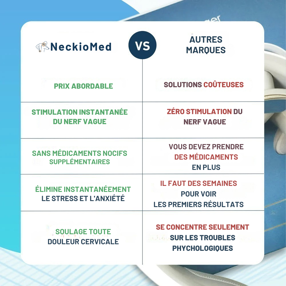 La thérapie avancée par électro-impulsions et la fonction de chaleur NeckioMed™ s’allient pour réduire la raideur, améliorer la circulation et stimuler naturellement le nerf vague.